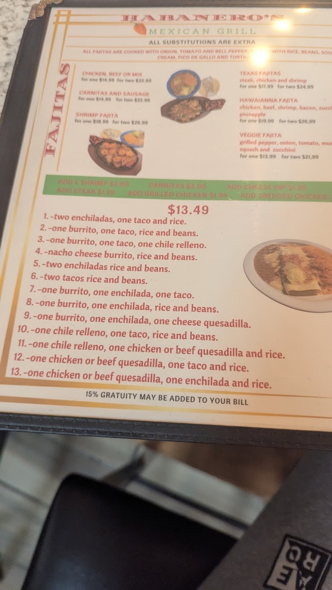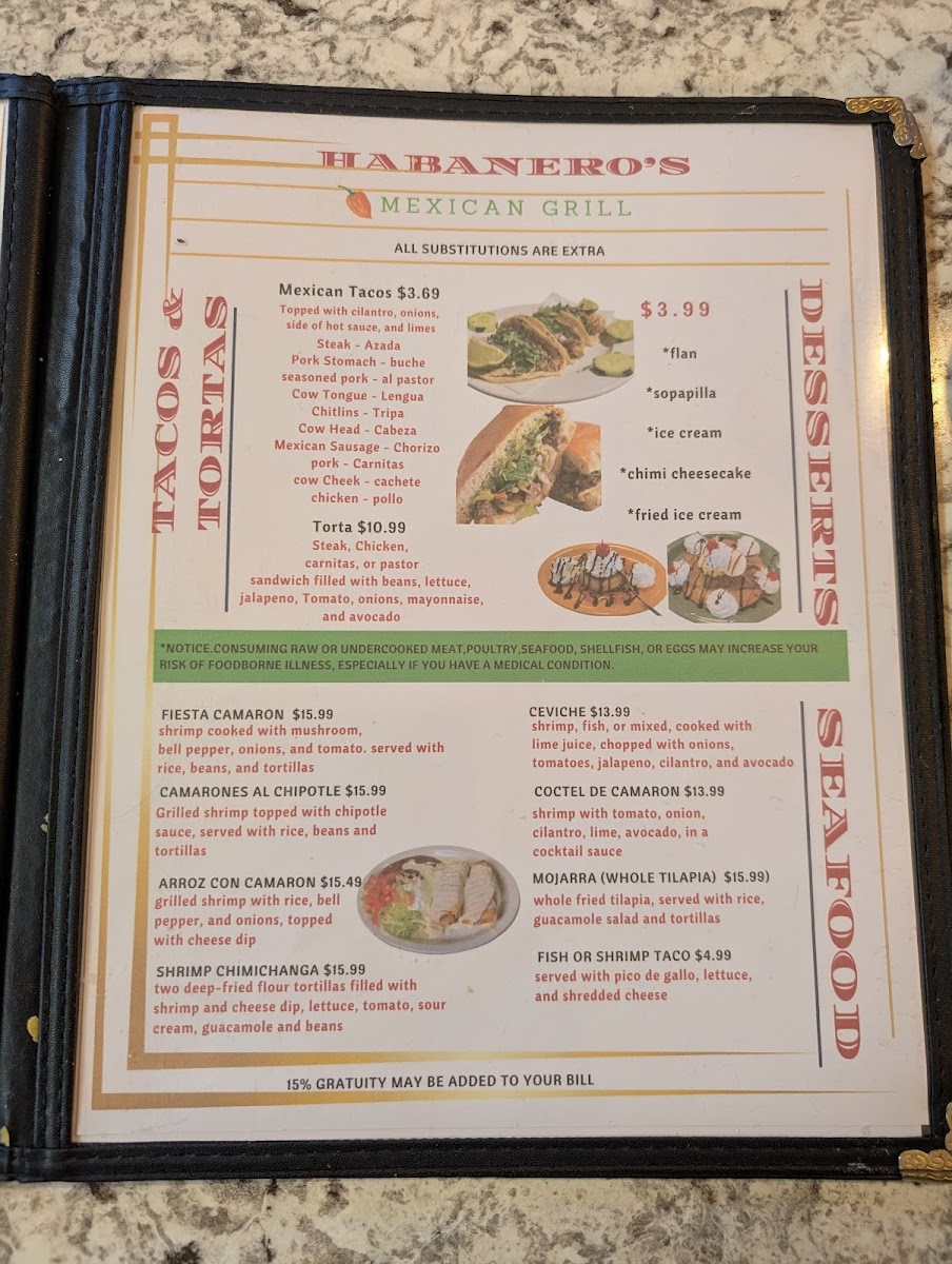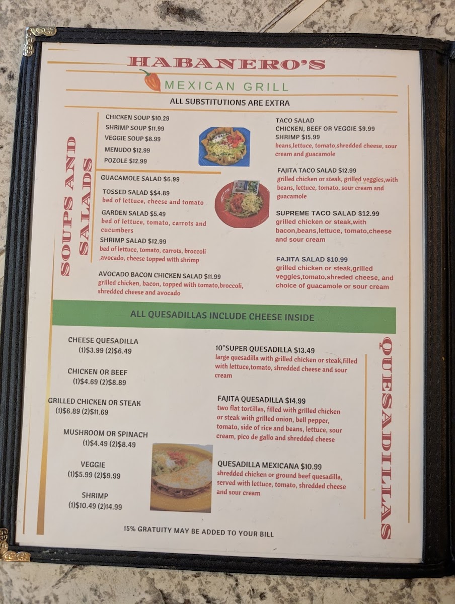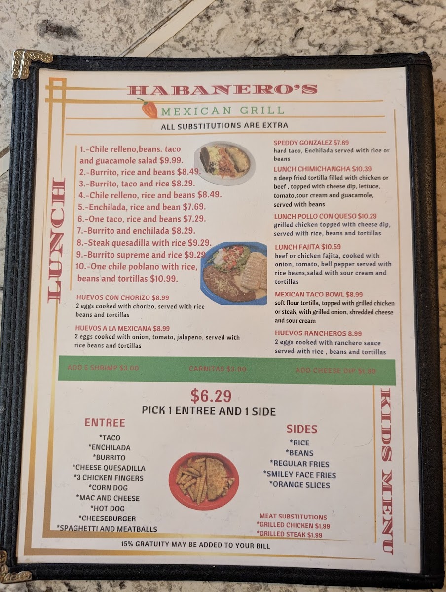 The menu at Habanero’s Mexican Grill offers a straightforward yet satisfying selection of classic Mexican dishes and comforting beverages. It’s the kind of menu that invites casual lunches and relaxed dinners, where familiar flavors and generous portions come together in a welcoming setting.
